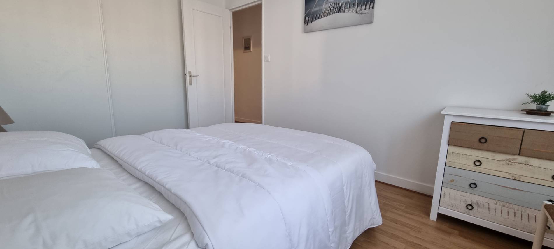 Bel appartement de 55m² env, situé au 2ème étage avec ascenseur de la résidence Atlantide à CONCARNEAU - 400m du centre ville , plages à traversée de rue - parking privé en 1er sous sol (hauteur sous porche 1m90) - Pleine vue mer -