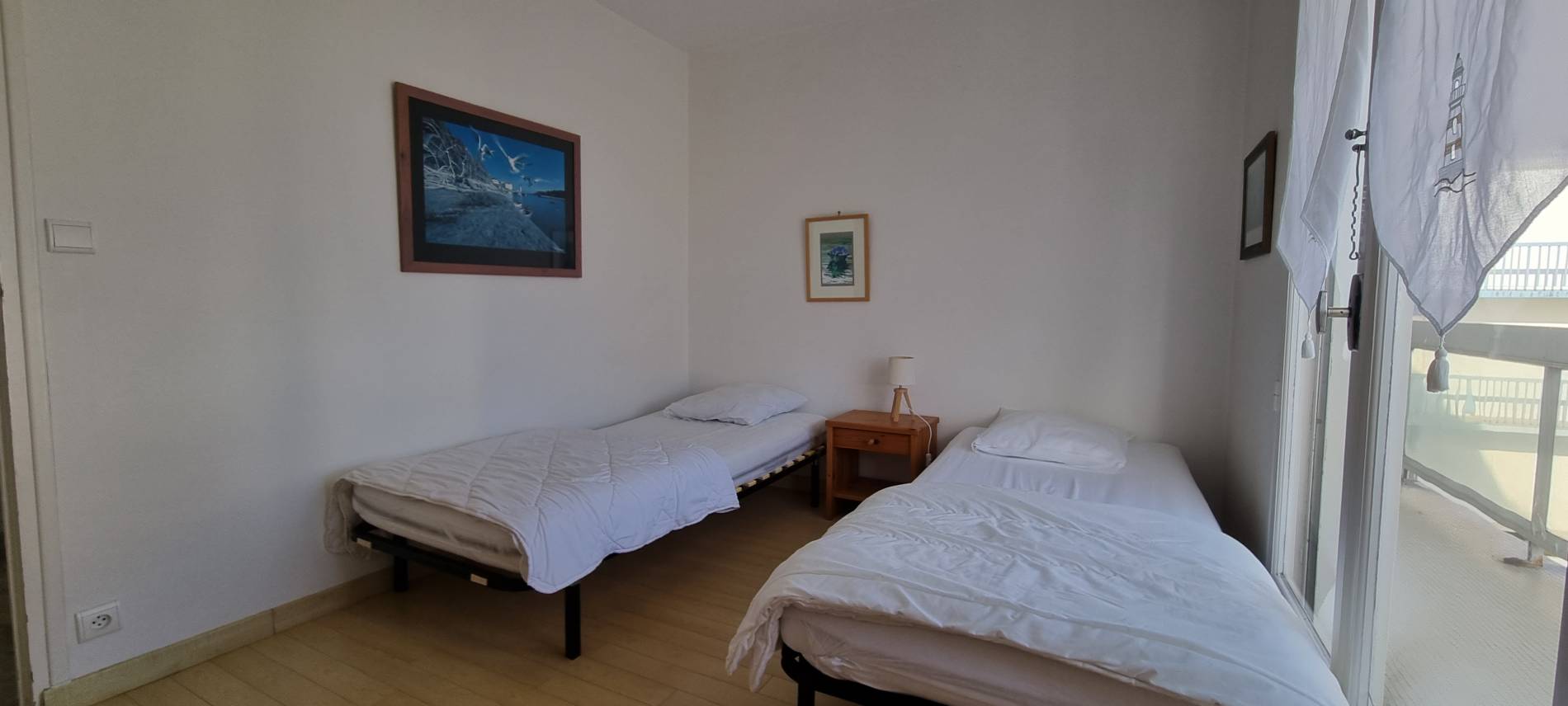 Chambre : 2 Lits 90cm – sol parquet – balcon vue arrière