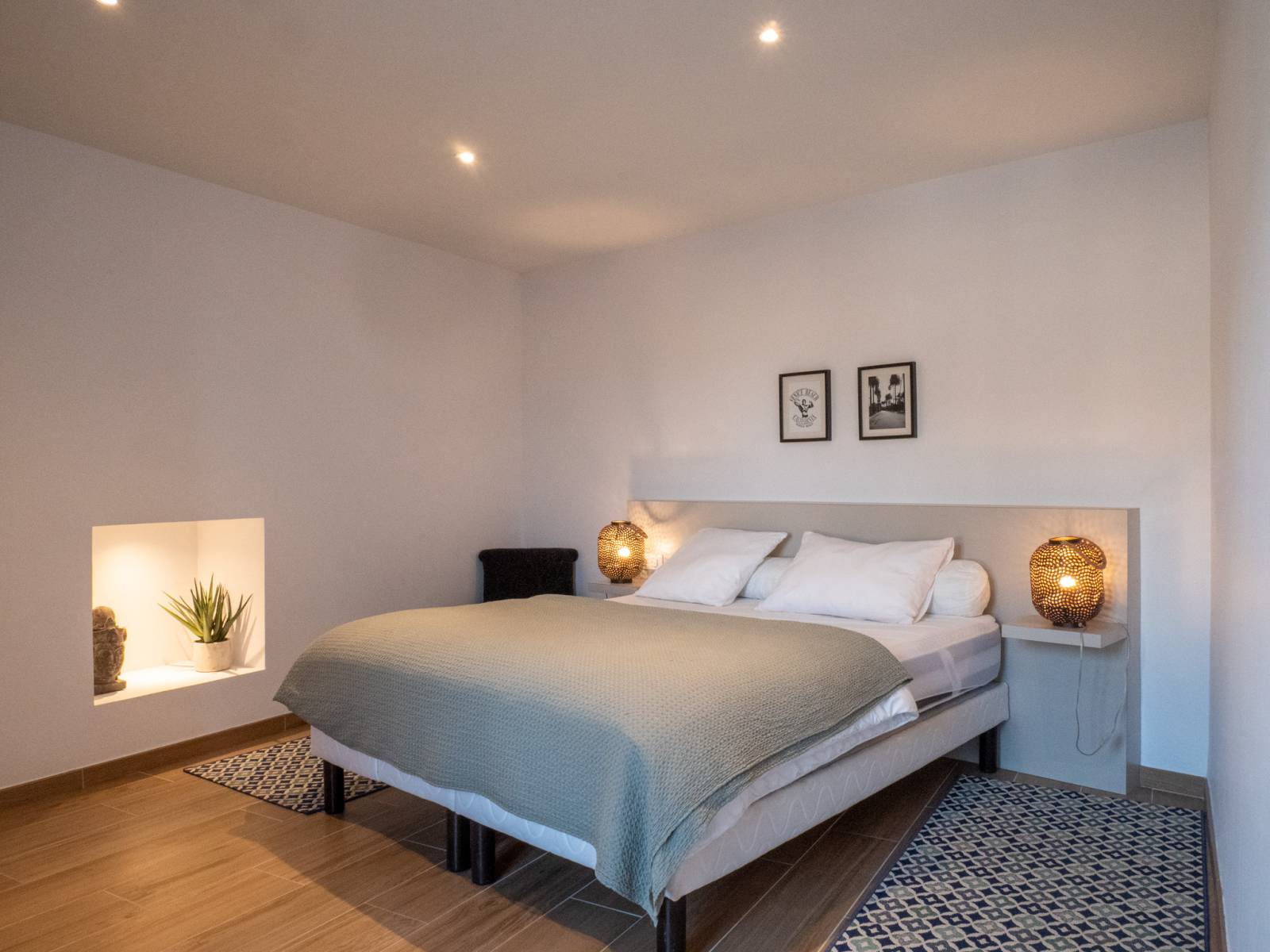 Rez de chaussée : Chambre 1 lit 160cm – armoire/penderie – carrelage imitation parquet – Vue chenal -