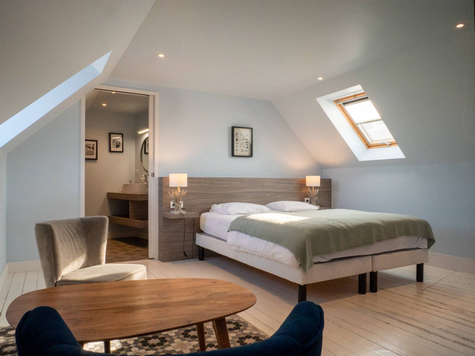 2ème étage : Suite parentale avec 1 lit 160cm - 2 fenêtres côté chenal - parquet blanc -