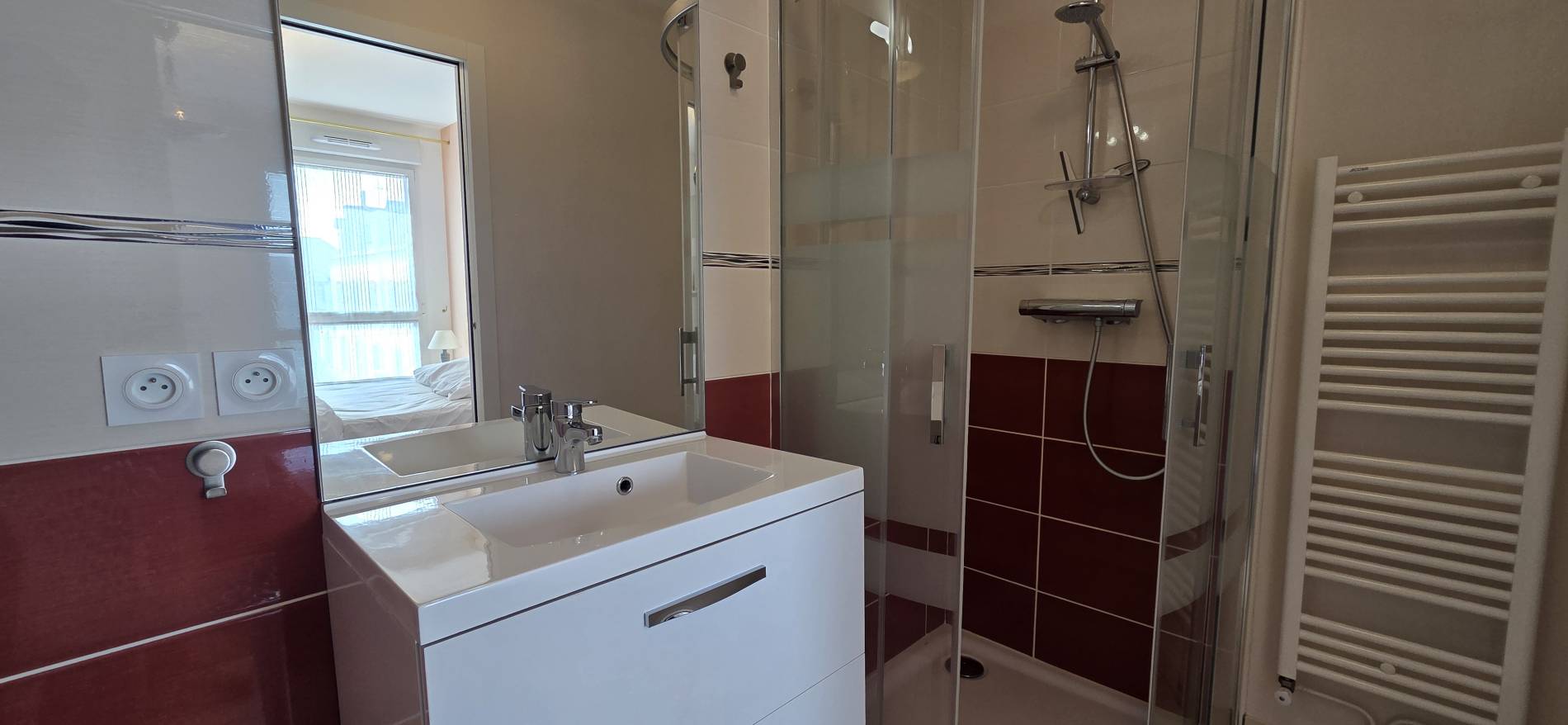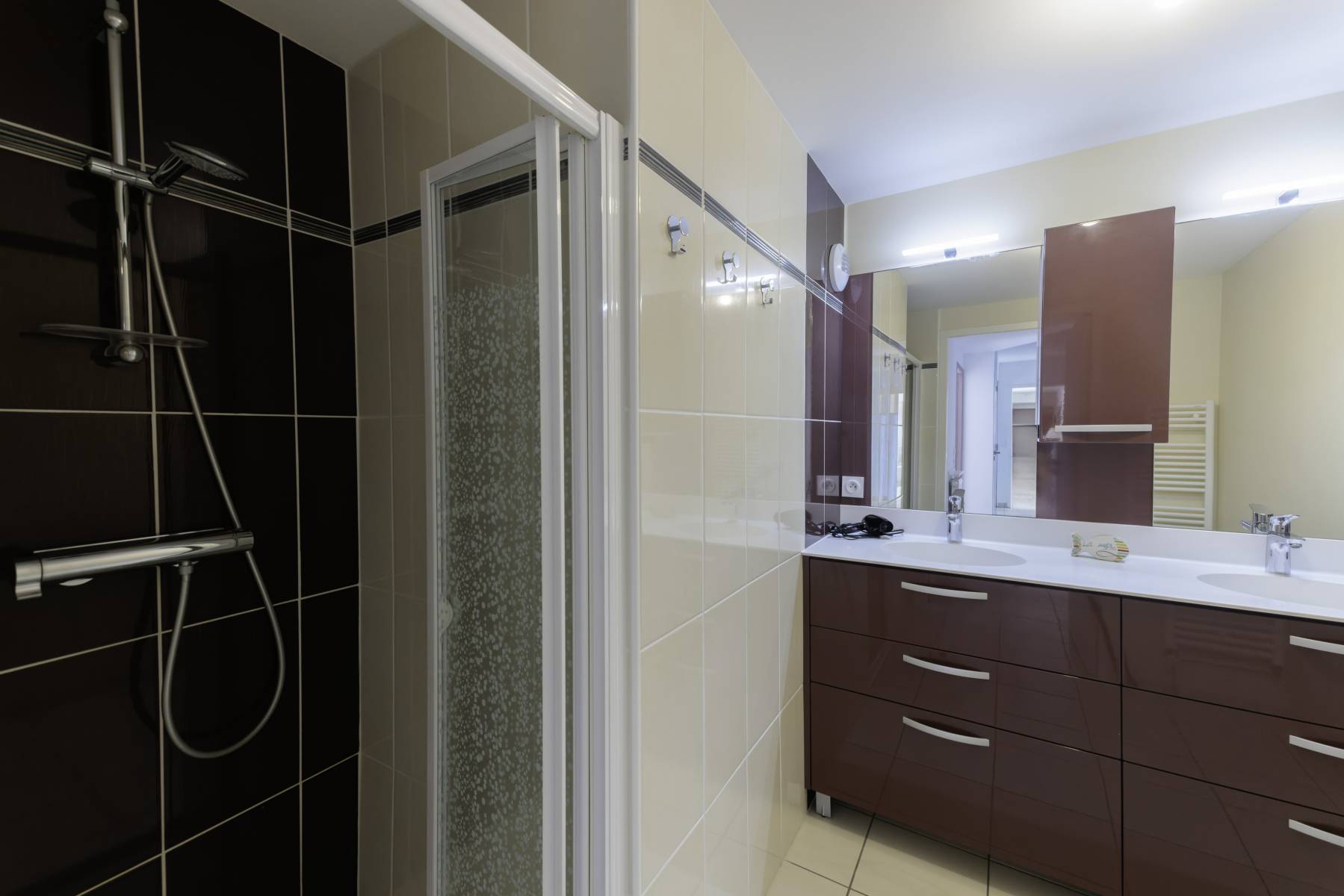 Salle de bain 2: Douche - meuble de rangements avec double vasques - sèche serviettes - sèche cheveux - miroir