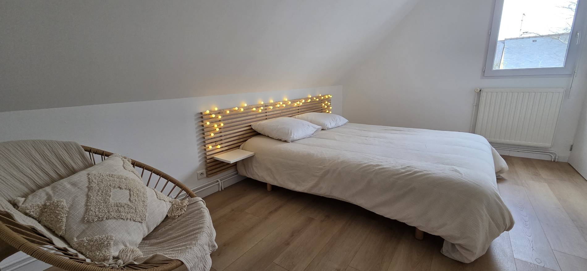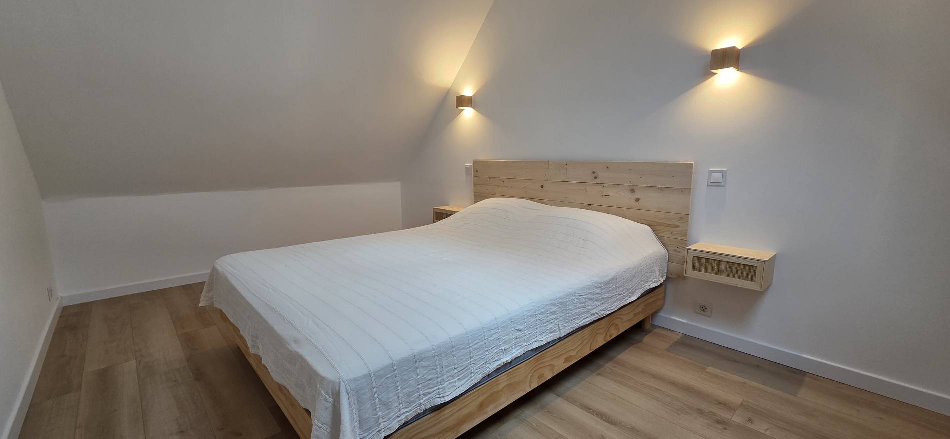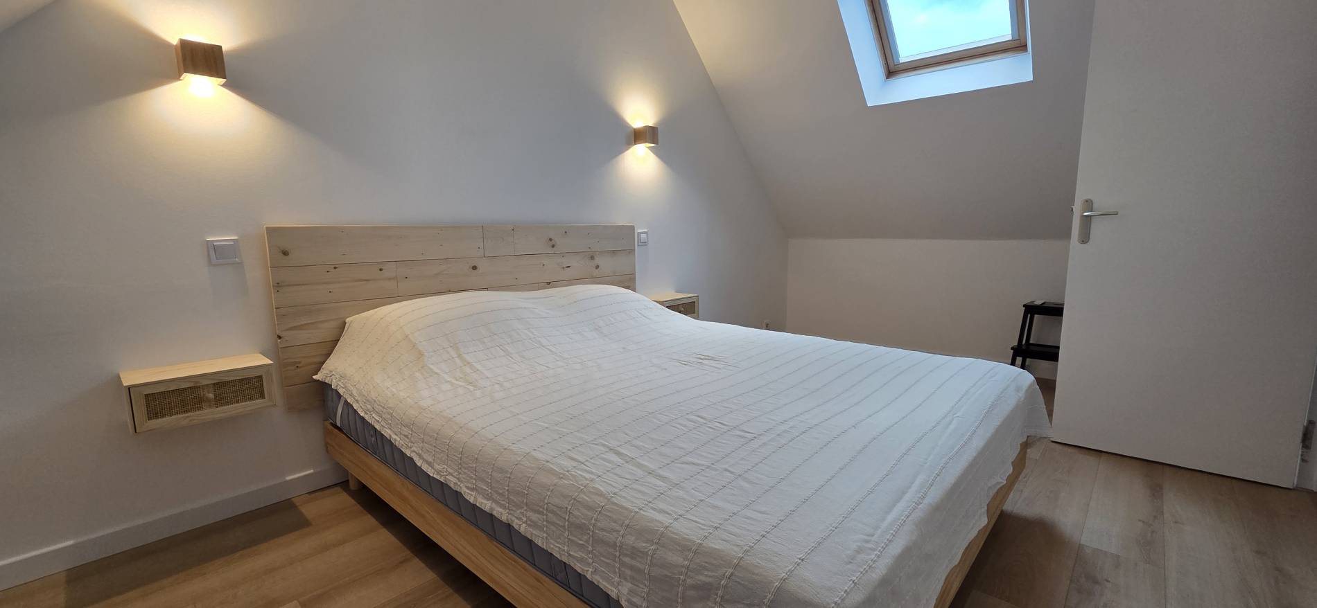 3ème Chambre : 1 Lit 160cm – Petits chevets muraux - Vélux donnant sur Jardin