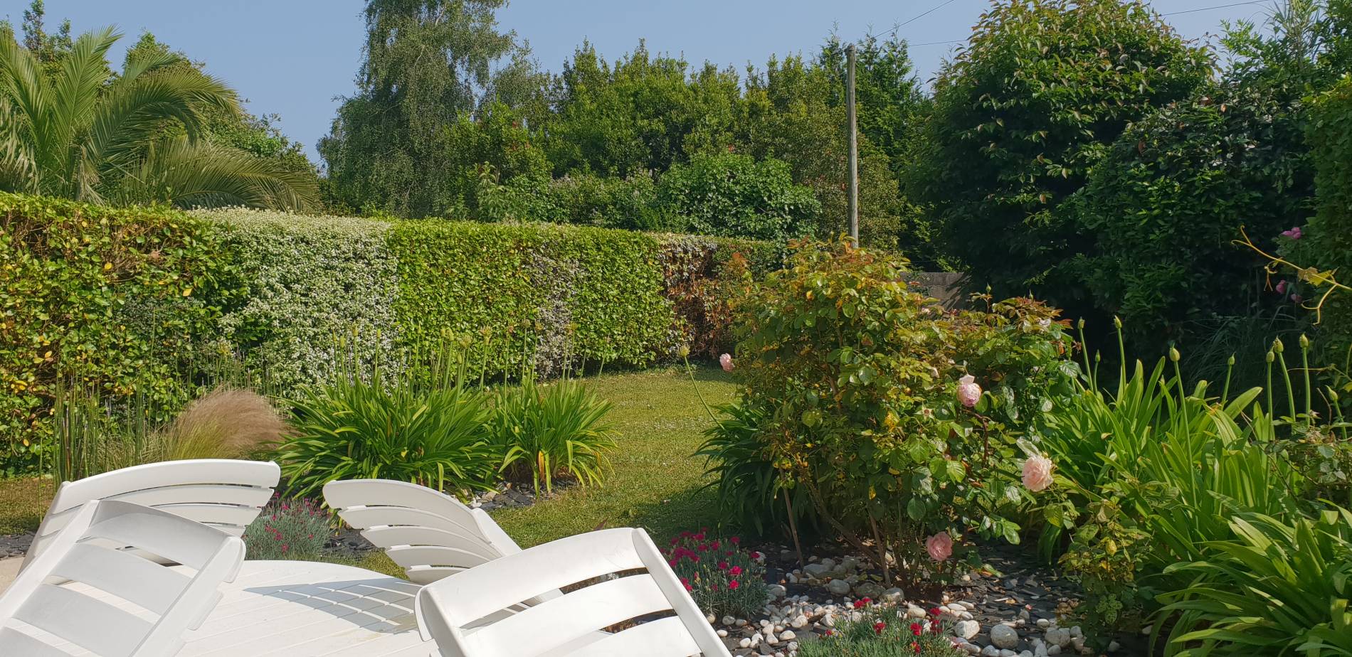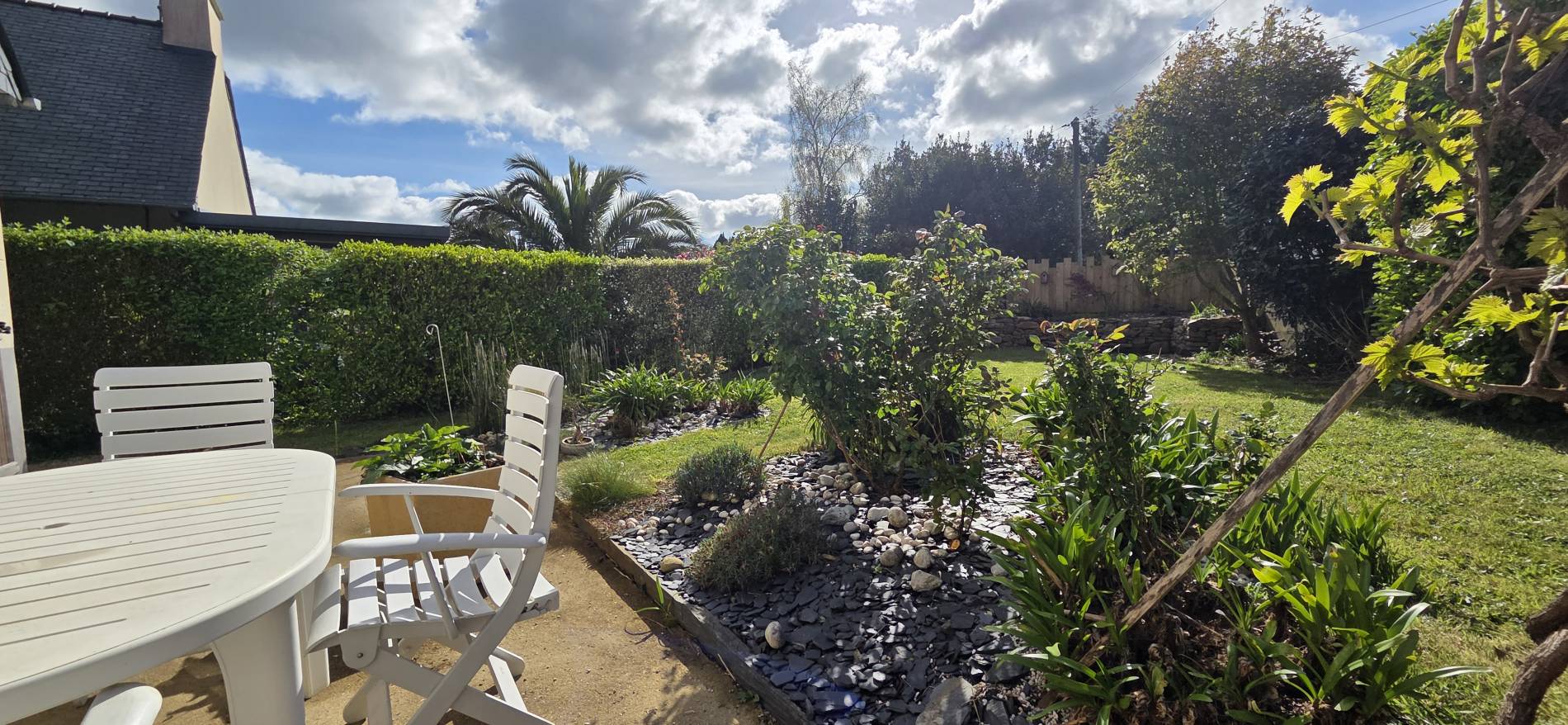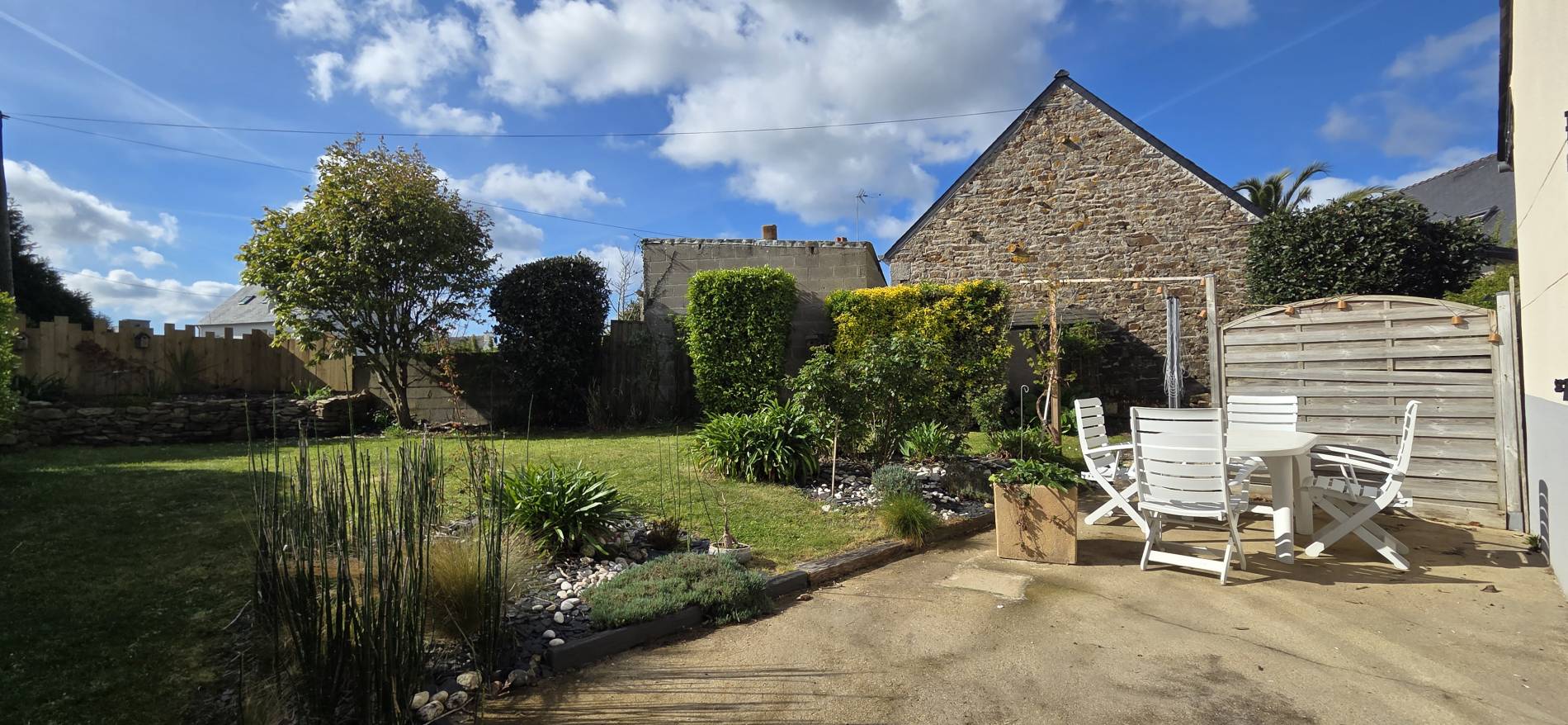 Cette Maison offre une jolie terrasse sans vis-à-vis et un jardin clos d’environ 400 m².